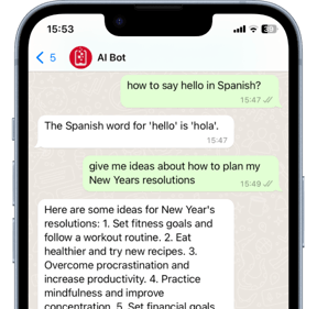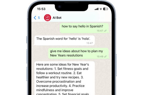 Scan the QR Code or click on the button and it will open your WhatsApp. Then start a chat with our AI bot.